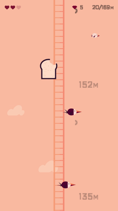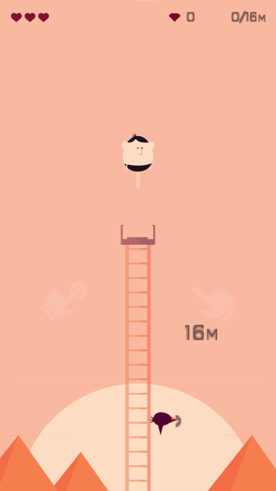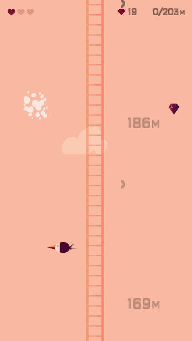 2、当你在高空中被小鸟攻击到时会损失一格心,当三格心全部消耗完毕就会失败;
