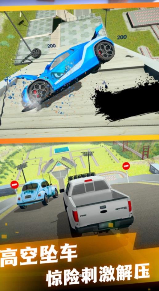 撞车破坏模拟是一款车祸模拟主题的刺激特技驾驶挑战类游戏,玩家需要通过高空赛道的刺激驾驶,来完成车祸模拟的测试,不同距离,车辆以及驾驶方式,都会展现出完全不同的车祸结果,玩家需要借助高端3D的车辆性能,来完成其中的精彩玩法挑战哦,彻底征服不同的高空赛道吧,展现华丽而又璀璨的车祸毁灭过程。