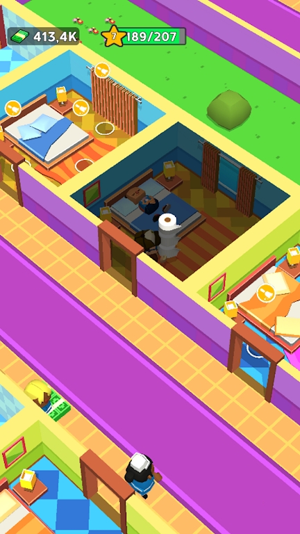 梦想经营酒店是一款模拟酒店经营的小游戏,采用放置养成的玩法,展开其中的精彩挑战,玩家需要合理布置不同的房间,以及整个酒店的布局,上帝视角的玩法模式,可以让玩家对其中的养成和发展全面掌控,当然你需要招募专业人员,为自己的酒店带来更好的服务,让十分有趣的游戏过程,可以让玩家自由体验。