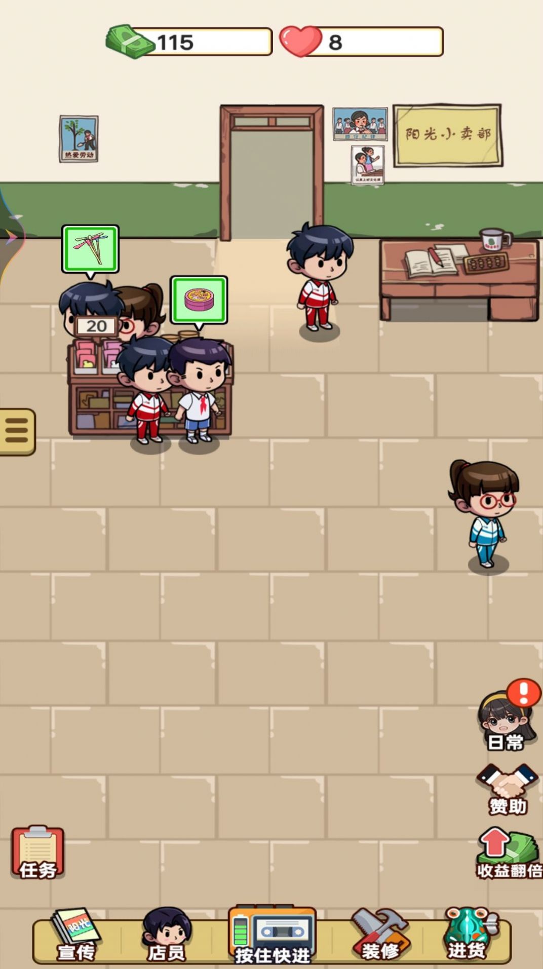 3、不断解锁新的道具和装备,丰富自己的小卖部,提升整体的竞争力;