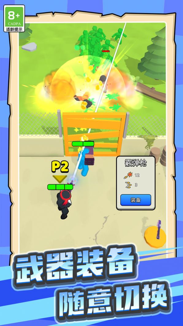 勇者吃鸡大作战一款刺激而有趣的动作冒险游戏,玩家将扮演一名勇者,随着时间的推移,岛屿的安全区域会不断缩小,玩家需要小心谨慎地避开毒圈,并与其他勇者进行战斗。在不同的场景中展开战斗。除了对抗其他勇者,玩家还需要应对岛上的危险环境和陷阱,带给玩家紧张刺激的战斗体验和竞争乐趣。挑战自己,成为最后的胜利者!