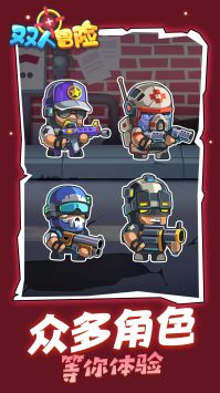 双人冒险是一款多人射击竞技主题的末日世界生存冒险的游戏,凭借大量僵尸的威胁,让玩家借助枪械武器,展开疯狂打僵尸以及多人射击竞技的刺激玩法。家可以选择不同的冒险地点,如神秘的古堡、危险的森林或神奇的迷宫。他们需要收集物品、解开谜题、战胜敌人以及避免陷阱和障碍物。