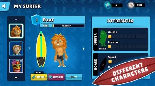 3、可以解锁不同的冲浪板和冲浪者角色,也能在不同海滩中展示你的冲浪技巧。