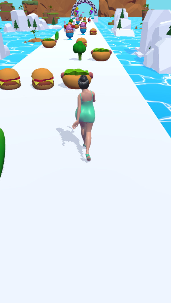 1、游戏中,玩家需要躲避赛道上的各种食物障碍,以最完美的身材冲向终点;