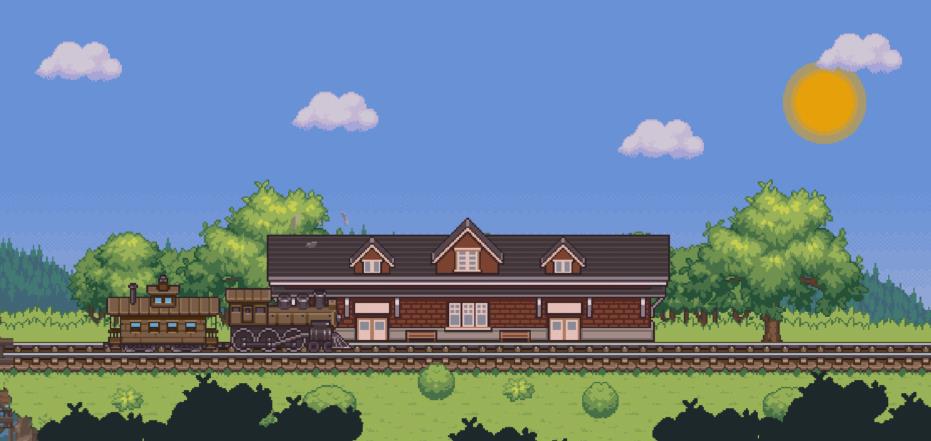 2、首先我们可以看到一列只有一节车厢的火车缓缓驶出,点开地图就可以看到它要驶向的终点,不过火车的运行路线玩家是没办法选择的,而且整个运行途中都是横版显示,简单却不失细腻的像素画风分别向我们演绎了美国本土不同地区的风光,以及一年四季的美丽景色,比如飘雪、艳阳高照什么的,可见开发商还是相当用心的。