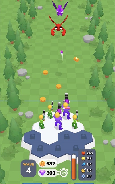 3、彻底解放自己的双手,不过想要消灭更多的怪物,就需要增加平台数量与英雄的数量。