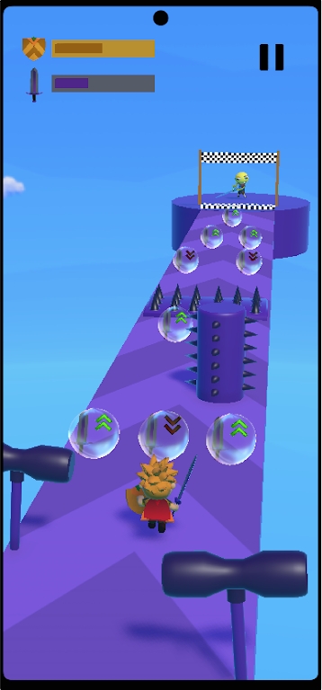 1.在骑士跑酷闯关游戏中,玩家需求不断地跳跃和跑动,一路上避开各种妨碍物;