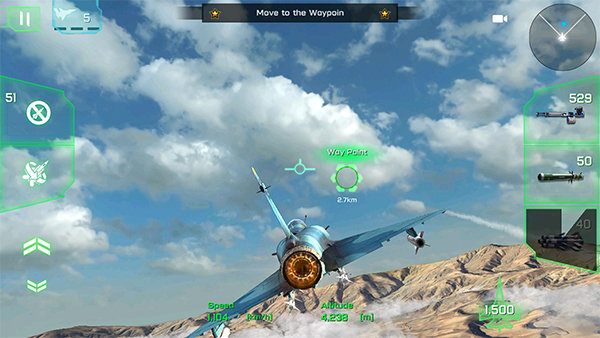 逼真的游戏画面,高度还原出了真实现代空中战场场景,加上超大仿真3D地图,360度自由旋转,让玩家身临其境,感受真实的空战体验。
