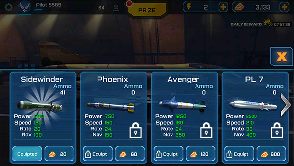 游戏中还加入了多种技能和装备,比如导弹、炸弹等,玩家可以通过不断升级自己的技能和装备,提高战斗力。