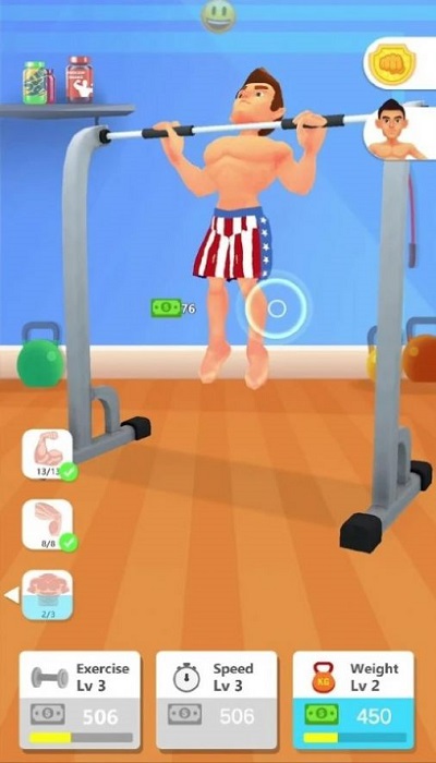 1、游戏精美的画面和3D灵动的人物,带我们走进这个自己开设的健身房。