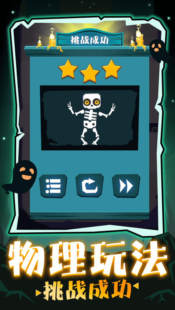 3、跳舞的骷髅在本游戏中,玩家成功拼凑出骷髅后,骷髅会为你表演一段舞蹈。