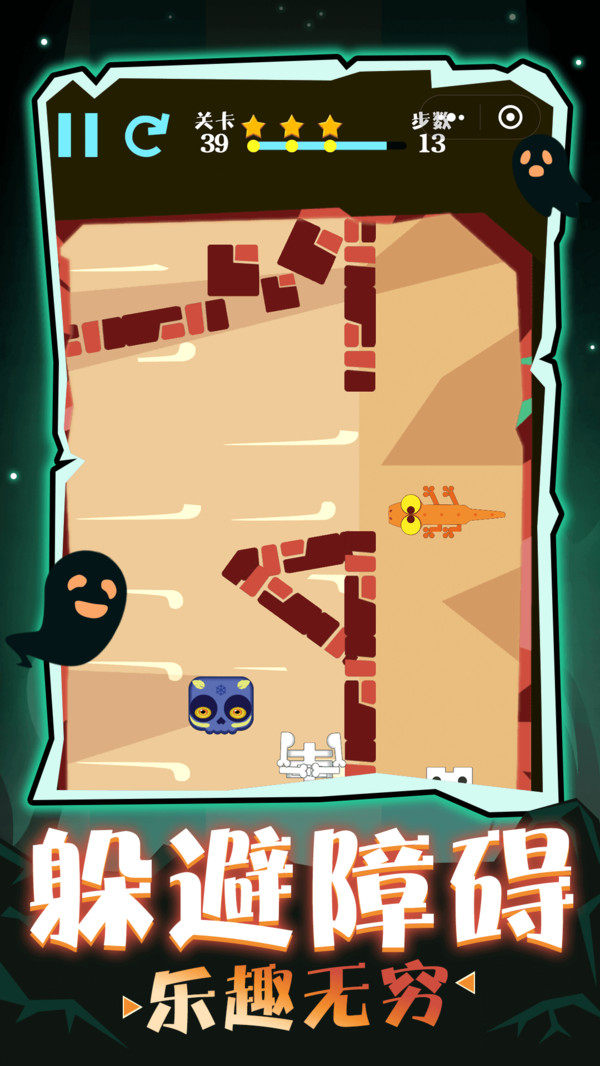 1、玩家需要控制骷髅不断躲避游戏关卡中的障碍物,克服困难才能成功通关。