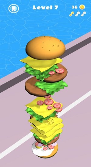2.在游戏中,玩家可以体验制作巨型汉堡的过程,当与各种食材堆叠在一起时,巨型汉堡会越来越高。