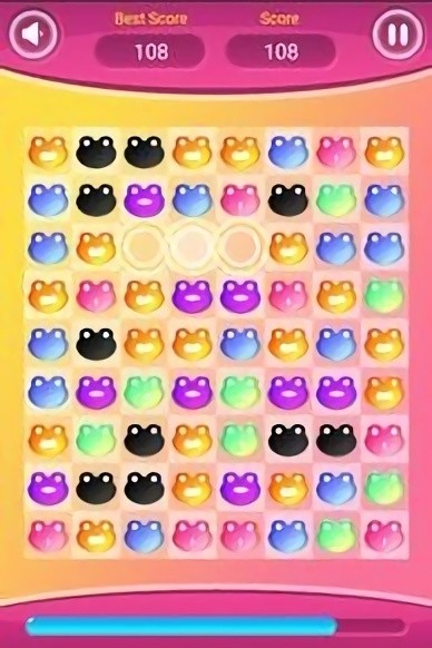 2、玩家可以通过不同的方式将可爱的小青蛙连接在一起,相同的可以消除。