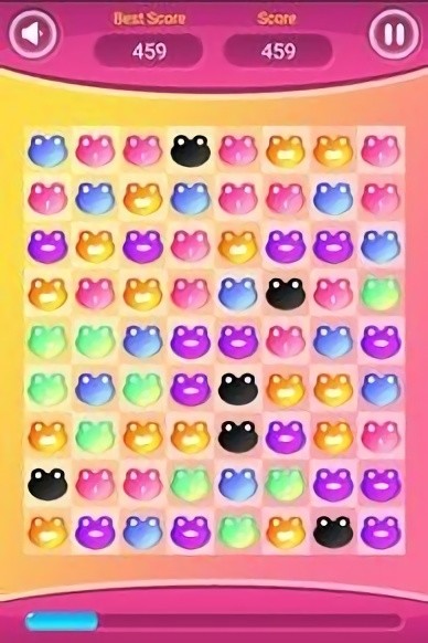 2、不同颜色的青蛙图案更有乐趣,点击相同的青蛙图案即可消除;