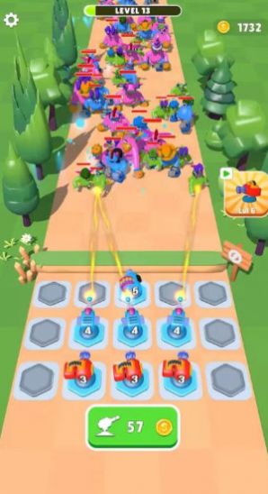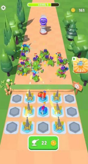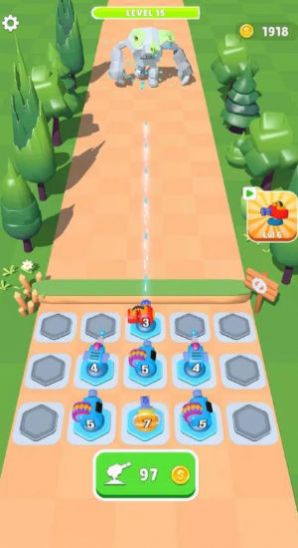 1、通过不断合并相同的防御塔,提高其攻击力和防御力,使自己更具优势,战胜敌方的怪物;
