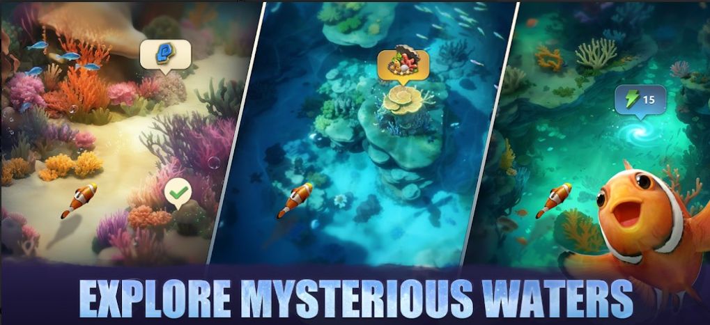 1、游戏中的卡通鱼群、珊瑚礁群、水等都呈现出鲜艳的效果,让你有身临其境的感觉;