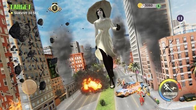 巨型城市粉碎模拟器是一个超级解压的破坏城市小游戏,玩家可以变身各种超大体型的怪物或者角色,通过第三视角的操控,将城市中的所有建筑尽数破坏,游戏玩法高度自由没有任何限制,需要玩家来操控不同的破坏速度, 并且在灵活视角的加持下,会通过真实的物理反馈,以及非常带感的操作体验,持续性的对城市进行破坏。