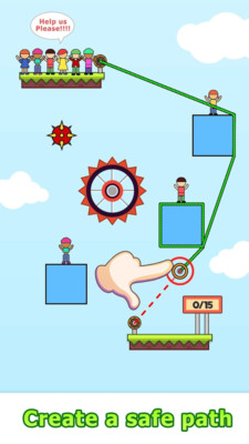 玩家通过绘制绳索将人从一个平台安全送至另一个平台,挑战十足的物理闯关游戏,