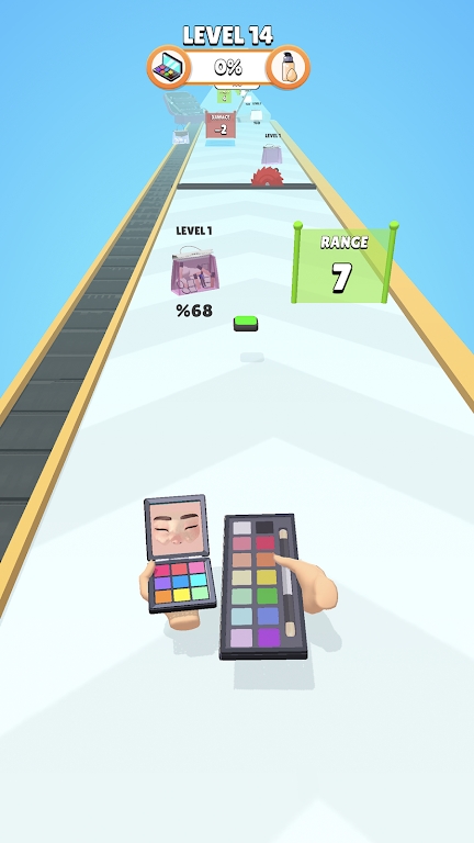 快速奔跑的同时进行各种美妆操作,收集道具提升游戏技能,挑战多个关卡和难度等级,