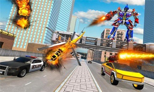 1、遇到警官处理不了的事件时玩家可以变身成巨大的机器人保护城市安全;