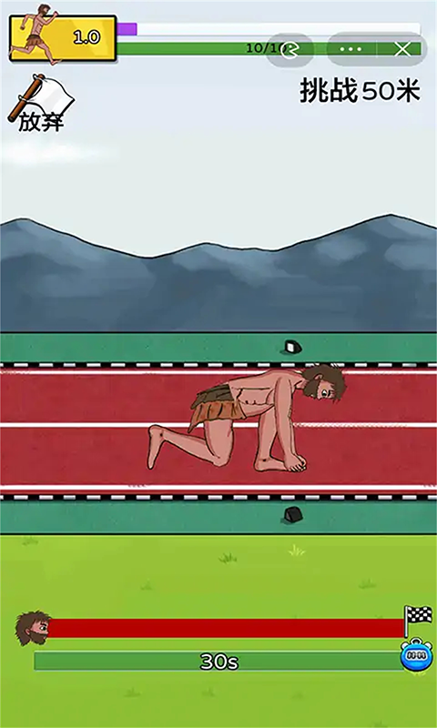 第一关是挑战外卖员,60米路程,比谁先到终点,同样是点击屏幕来增加速度的玩法。