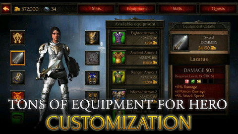 3、全新的战斗系统让你体验。在游戏中,玩家可以提升角色的属性点,用怪物掉落的金币装备自己,增强自身实力。