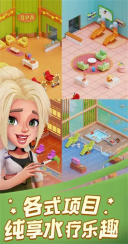 我的桑拿帝国是一款大型洗浴中心的放置模拟经营类游戏,其中的玩法操作十分简单,需要通过玩家的DIY装饰,来决定洗浴中心的最终风格,其次是借助合理的布局,正确的调整不同项目的位置,通过大量的金币解锁更多不同的洗浴模式。清晰立体的3D画面,也可以带给玩家更多精彩的视觉反馈哦。