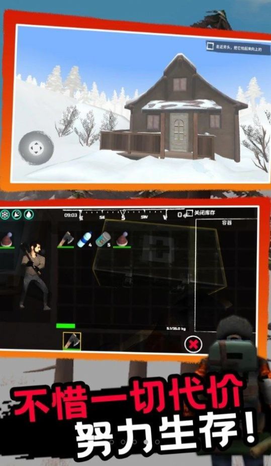 1、冒险生存:在严寒的环境中,你需要收集资源、寻找食物、建造庇护所来保护自己免受恶劣天气的影响。