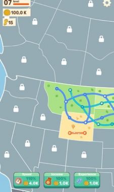 3、不断的升级,让你的轨道遍布全世界,运输货物到指定点,赚取财富。