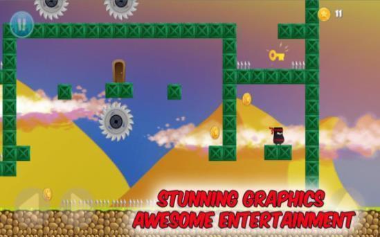 忍者游侠超级冒险在这款游戏中,玩家将扮演一名忍者来突破关卡,一路上你会遇到很多强大的敌人,你需要操作和使用灵活的行走来避免攻击。找准时机直接战胜敌人,各种挑战任务等着你去做。完成任务后,可以获得丰厚的奖励,解锁更多好玩的关卡,喜欢的小伙伴来试试看吧。