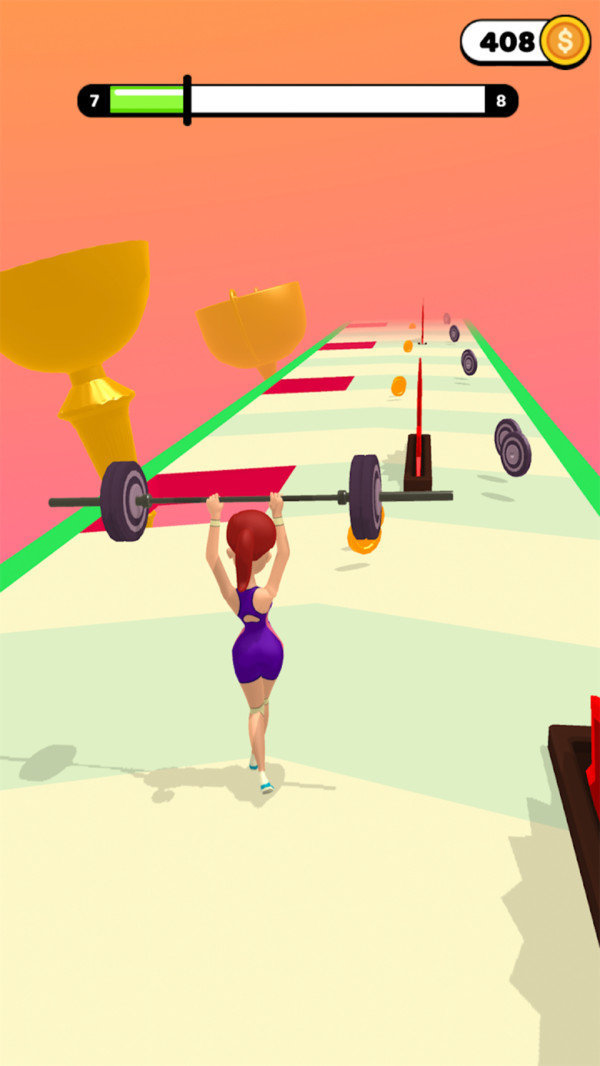 疯狂抬杠铃需要不断地规避障碍物闯关,到达终点就能获取游戏奖励了。