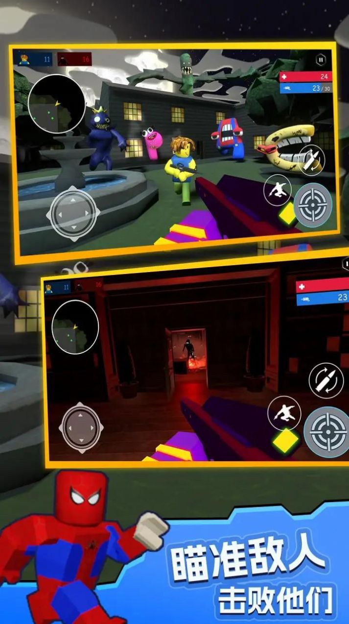 1、在字母怪物世界中展开一场有趣精彩的挑战,扮演怪物或是猎人展开刺激的枪战挑战;