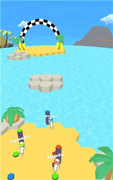 在下一个岛上继续搜集搭建直到终点,注意不要被对手干扰。