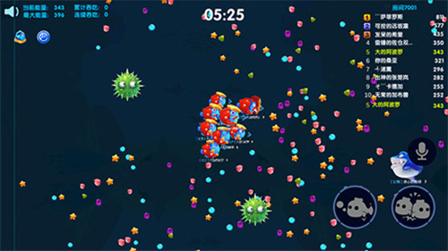 1、海底大作战手游中,玩家依靠吃糖果、吃海胆和吃同类让自己逐渐变大变强壮,可小编这种佛系少女觉得和其他玩家追逐厮杀实在是太不和平了。既然吃糖果和海胆也能长大,小编是否可以不杀生的佛系成长呢?