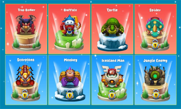 丛林轰炸机在关卡中移动并放置各种炸弹炸毁您的对手。