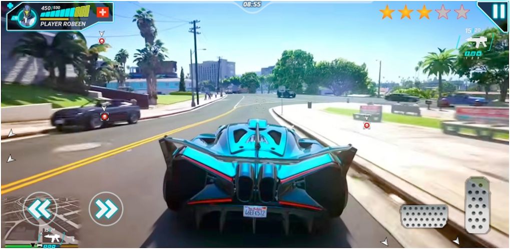 加城的人生冒险采用高度自由的城市犯罪主题,让玩家沉浸在全新的3D人生模拟之中。以第三视角的操作展开更多精彩的玩法挑战,结合了更加轻松和自由的精彩犯罪挑战,还有十分刺激的玩法模式设定,都可以任你选择,所有的汽车,以及全部的武器,都能轻松解锁,庞大的城市背景,可以让玩家在其中尽情的肆虐。