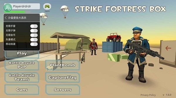 沙盒堡垒大逃杀内置菜单版是一个沙盒世界的多阵营热血枪战主题游戏,采用大规模的混乱作战开启其中的无限激情对决,内置菜单的版本在破解免费功能菜单的同时,还带来了无限子弹以及FF数值修改器的福利。复古军事战争的题材背景,结合了精彩刺激而又充满挑战性的玩法 特点,热血的射击竞技模式,都能让玩家在其中体验充满激情的对抗。