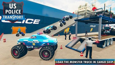 3、但它是一个真正的警车运输游戏的可能性。货物卡车司机和怪物卡车拖车装载在目的地警察怪物卡车,