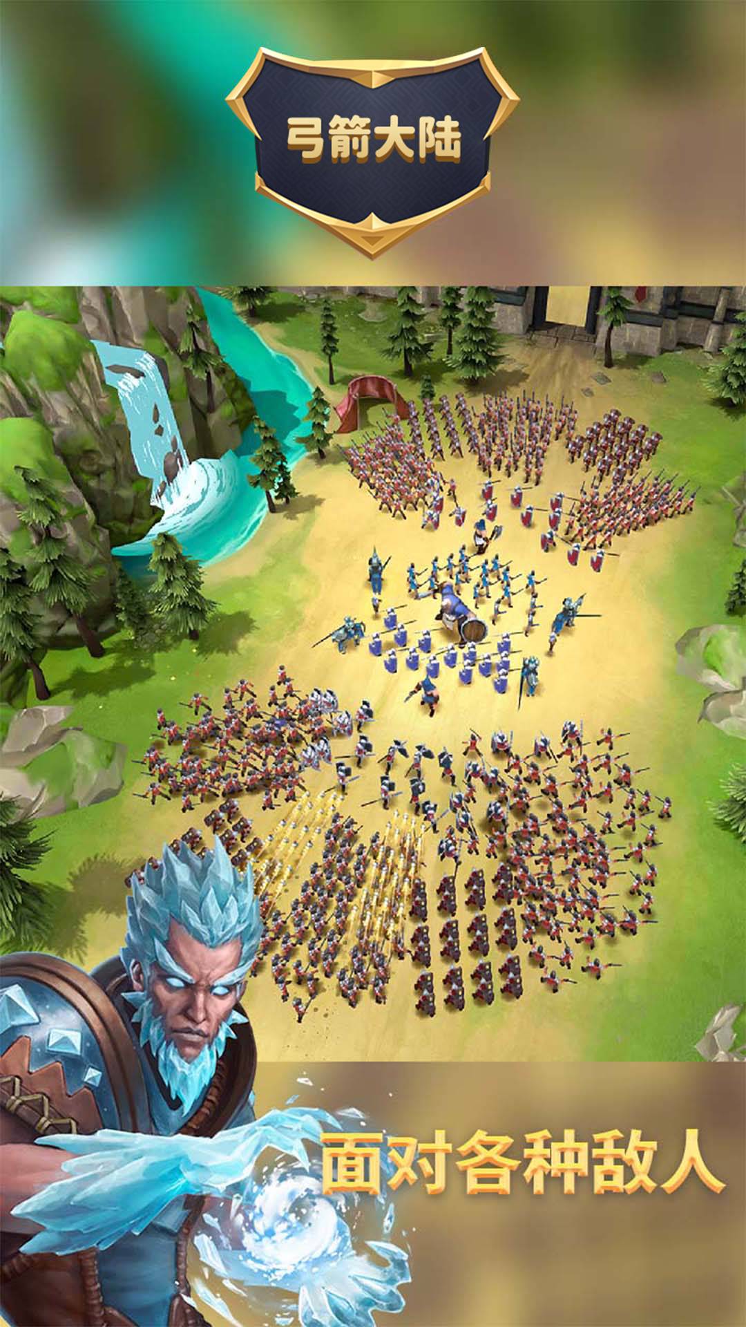 弓箭大陆是一款魔幻世界的大规模古风策略战争模拟类的游戏,每一个关卡都会设置强大的军队,阻挠玩家的挑战,所以你需要合理调整军队战术,解锁更多战斗力强大的兵种,来完成游戏世界之中的热血征战,双方阵营的大规模激烈对抗,都会通过清晰的3D画面,非常直观的呈现给每一个玩家,超爽的热血挑战,也都让你自由的进行。