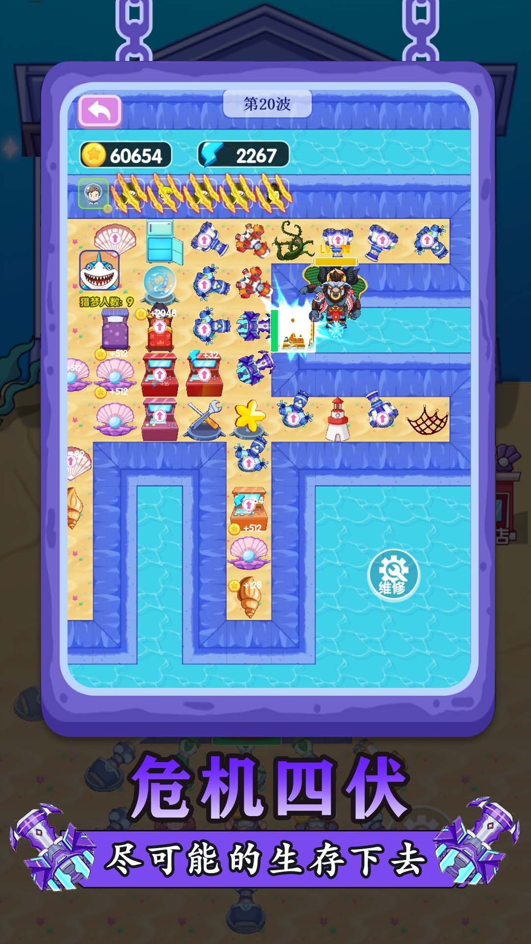 玩家需要合理布局,摆放不同类型的防御设施,比如鱼缸、栏杆、哨兵等等。