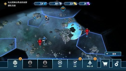 1、使用资源来修复和升级你的母舰,扩大总部,提供更多设备和支持你的船员;