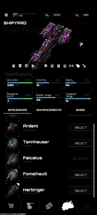 2、改进你的盾牌、引擎和武器,以承受最猛烈的外星人袭击,解锁具有特殊能力的新船;