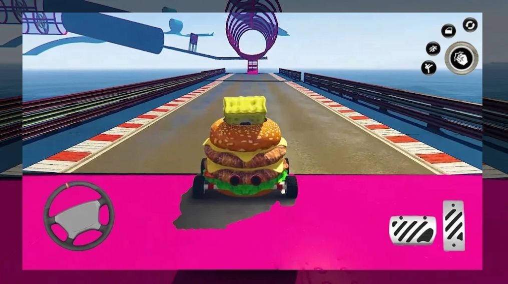 这个汉堡海绵车游戏,借助Q萌可爱的汉堡车,让玩家以灵活的操控,来征服3D高空特技赛道的驾驶冒险。