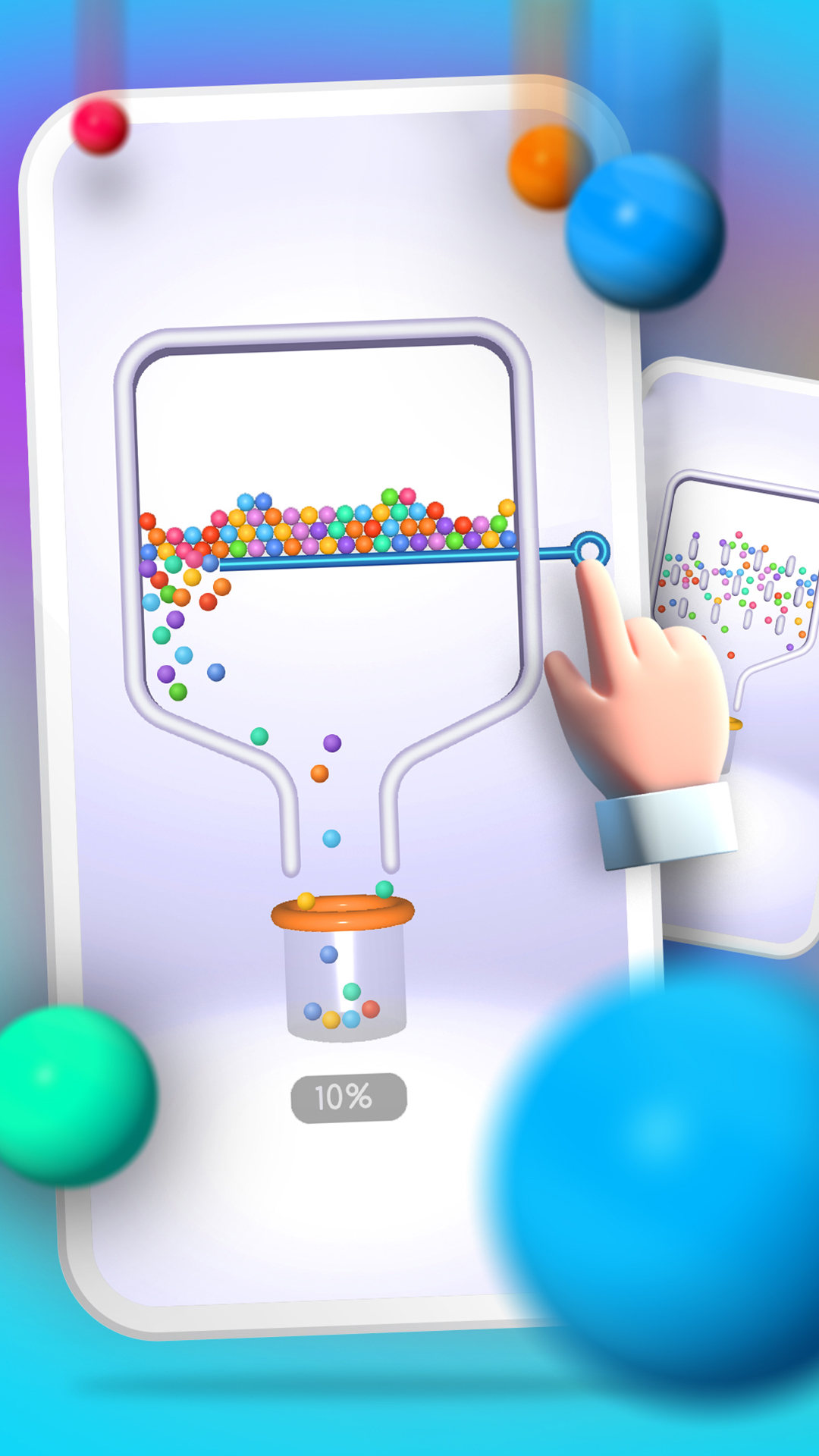 3、手指拉动栏杆,将球引导到瓶子中。这看起来很简单,但非常具有挑战性。