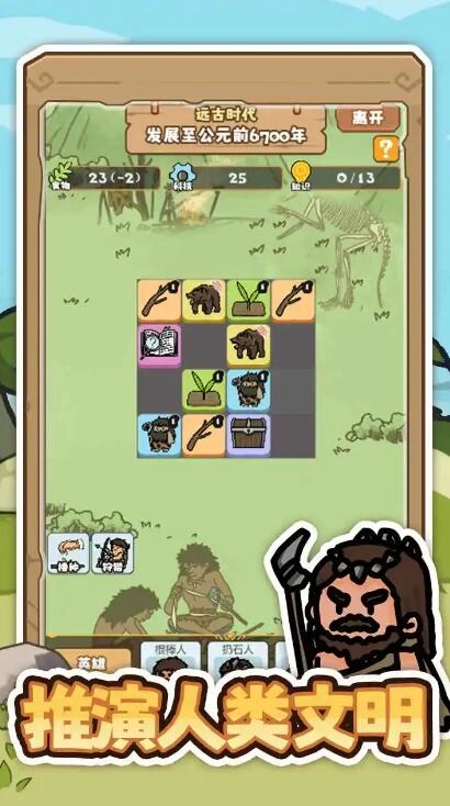 1、从人类起源开始,玩家通过合成获得资源,推演整个人类历史的发展过程;