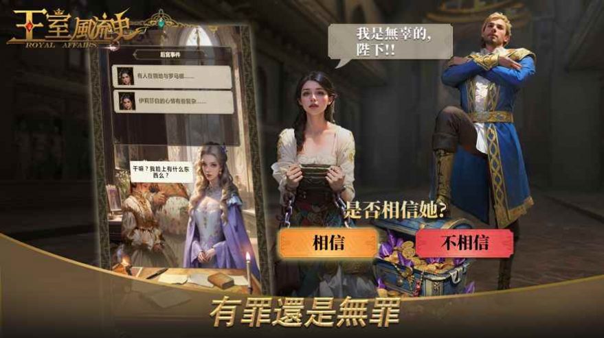 王室风流史古欧洲中世纪王庭之中的恋爱养成策略生存类游戏,成熟的AI系统,会根据不同NPC角色的剧情设定,让玩家与之自由互动,并且选择不同的故事线走向,玩家将体验古风恋爱模拟的挑战模式,独特的西方复古宫廷风画面背景,将以游戏世界的完整人生过程。展现超级精彩的游戏背景,尔虞我诈的皇室策略生存,都是会充满烧脑竞争的。