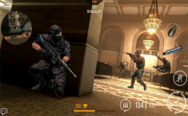 1、第一人称的操作,劲爆的射击挑战等你,在规定的时间之内消灭更多的对手