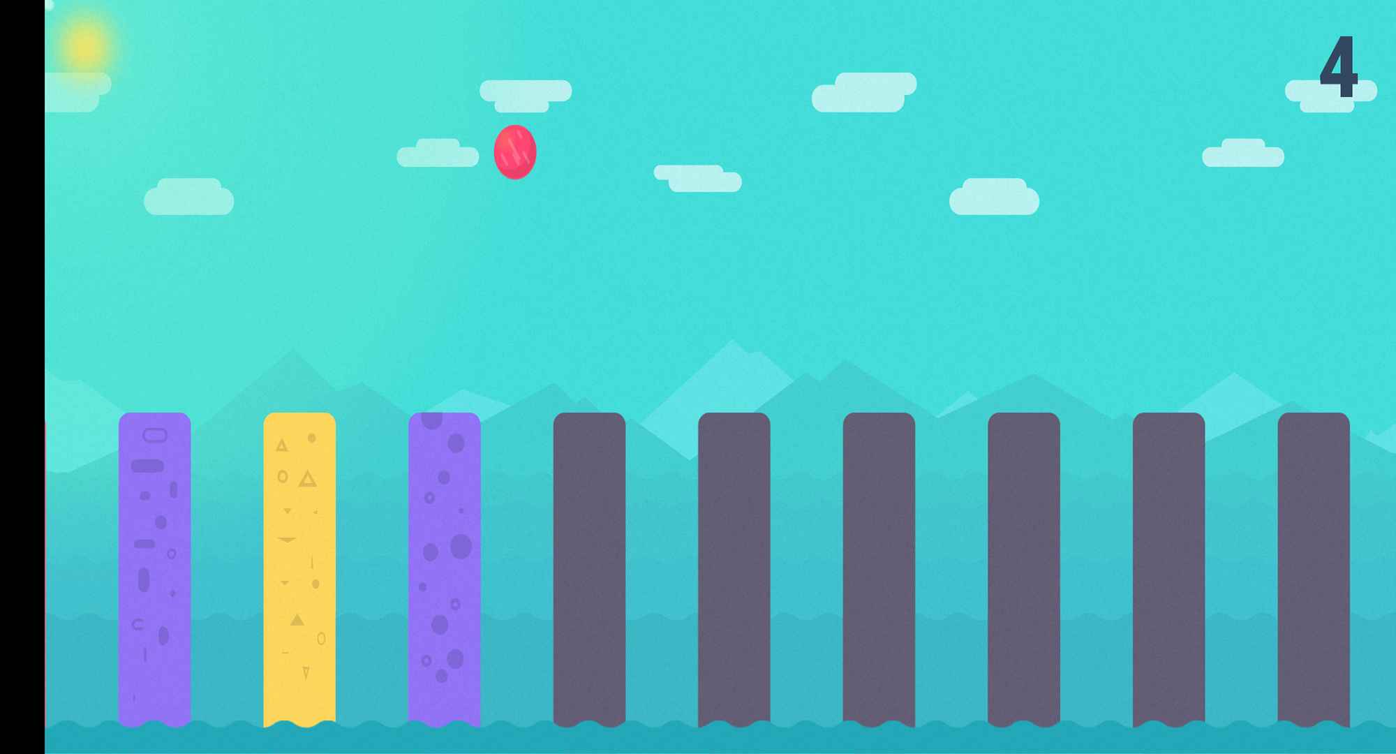 3、当颜色对应后小球弹起之后会转变成下一个颜色,每个都对应上才可以。