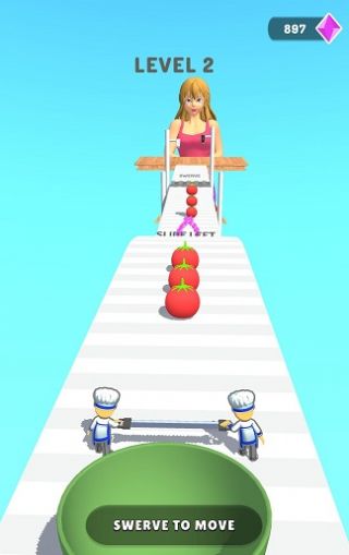 2、轻松简单有趣的挑战模式带给你不一样的乐趣,享受成为一名刀功了得的厨师